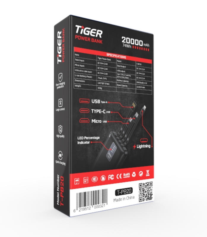Tiger Power Bank 20,000mAh Model T-PB20 بوربانك