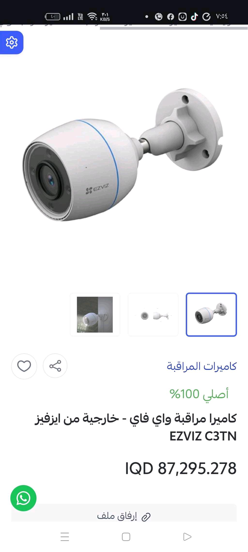 كاميرا المراقبة EZVIZ C3TN – وضوح، أمان، وراحة بال إذا تبحث عن كاميرا مراقبة خارجية تجمع بين الأد... كاميرا المراقبة EZVIZ C3TN – وضوح، أمان، وراحة بال إذا تبحث عن كاميرا مراقبة خارجية تجمع بين الأداء العالي والسعر المناسب، فـ EZVIZ C3TN هي الخيار المثالي لك. شركة EZVIZ معروفة عالميًا بقوتها في مجال أنظمة الأمان الذكية، وتقدم دائمًا أجهزة تجمع بين الجودة، التصميم العملي، والتكنولوجيا الحديثة – وكاميرا C3TN خير دليل. المميزات الأساسية: 🔹 دقة Full HD 1080p – وضوح مذهل حتى في أدق التفاصيل 🔹 رؤية ليلية بالأشعة تحت الحمراء تصل حتى 30 متر – تبقى الصورة واضحة حتى بالظلام التام 🔹 تصميم مقاوم للظروف الجوية – تتحمل المطر، الغبار، والحرارة، وتشتغل بكل الظروف 🔹 تركيب سهل – تصميم مريح وسهل التثبيت بأي زاوية 🔹 تشغيل دائم وسجل فيديوهات – مناسب للبيت، المكتب، المحلات أو حتى الأماكن المفتوحة ليش EZVIZ؟ شركة EZVIZ جزء من مجموعة Hikvision العالمية – واحدة من أقوى وأكبر الشركات في مجال أنظمة المراقبة. كاميراتهم معروفة بالاعتمادية والدقة والتحديثات المستمرة عبر التطبيق. إذا تهمّك حماية المكان بأقل جهد وأعلى كفاءة، فـ C3TN تستحق تكون خيارك الأول. جودة EZVIZ مو بس اسم، هي راحة بالك كل يوم.