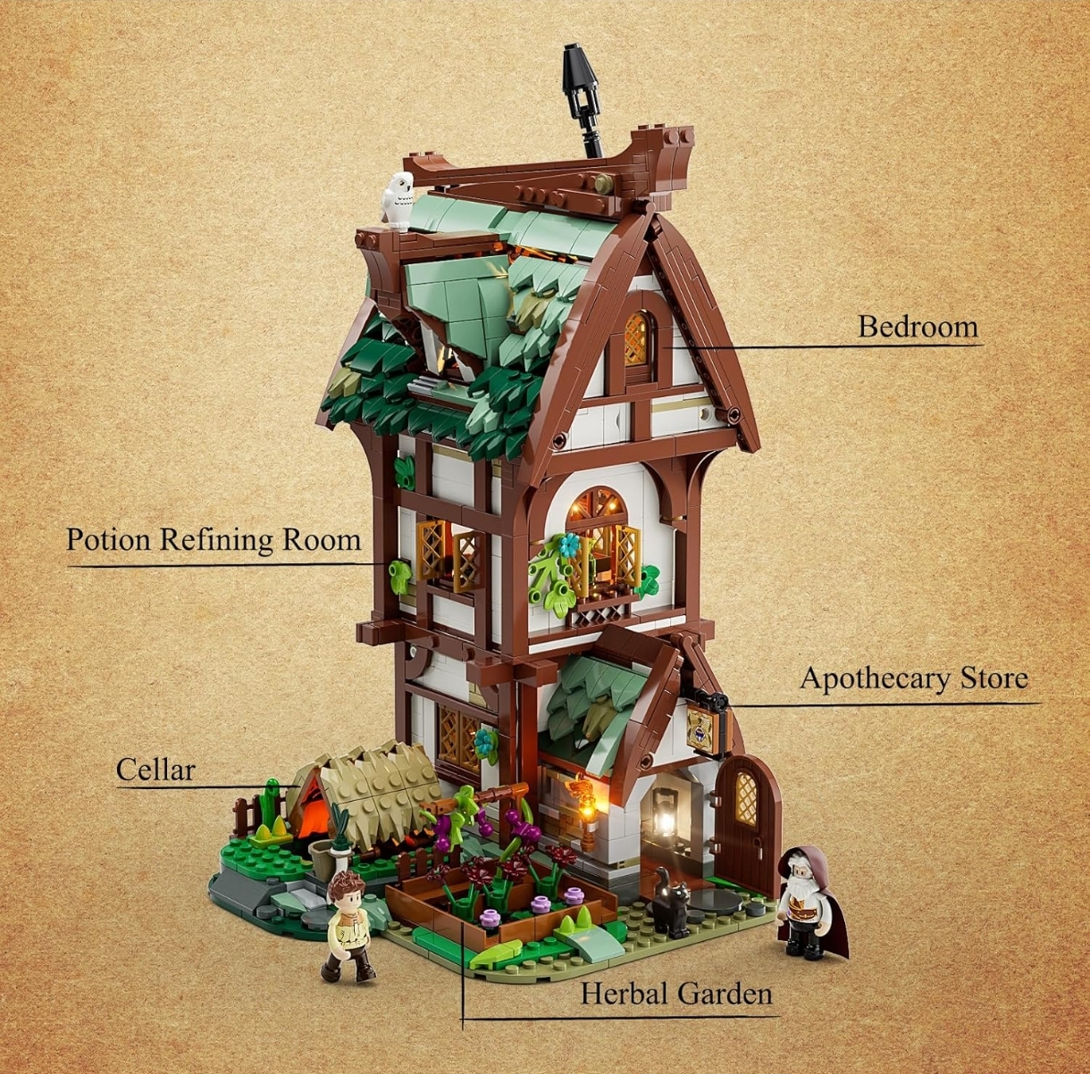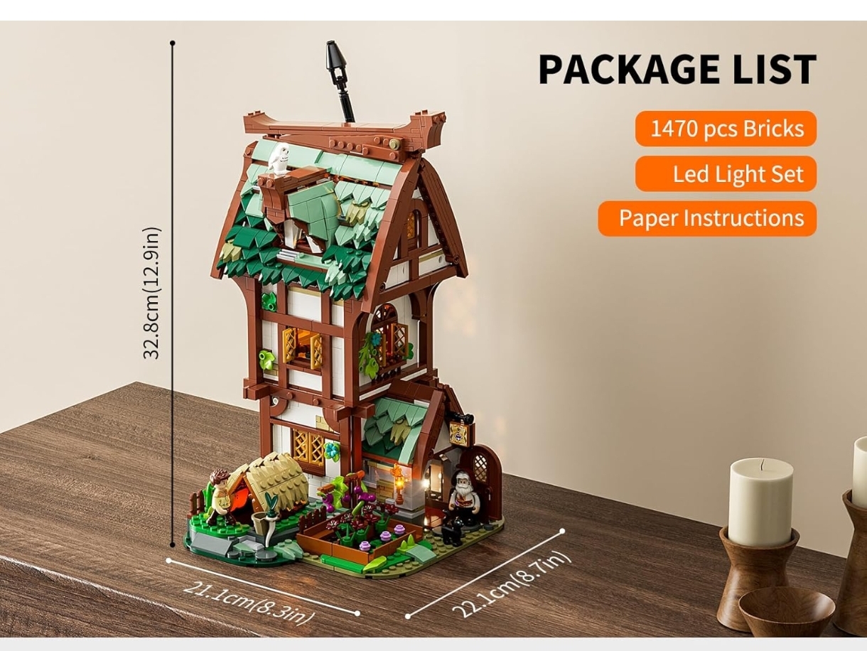 🏰 مجسم دار الصيدلي في العصور الوسطى من FUNWHOLE – 1470 قطعة مع إضاءة LED