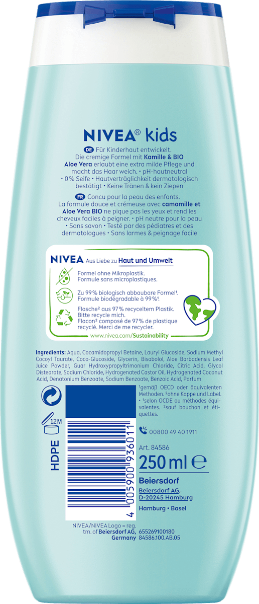 امنحي أطفالك تجربة استحمام ممتعة وآمنة مع NIVEA Kids 3in1 Shower Gel, Shampoo & Conditioner برائحة ا... امنحي أطفالك تجربة استحمام ممتعة وآمنة مع NIVEA Kids 3in1 Shower Gel, Shampoo & Conditioner برائحة التفاح السحرية 🍎. تركيبة ناعمة جدًا ومناسبة للبشرة الحساسة تنظف الجسم والشعر بلطف، وتترك الشعر ناعم وسهل التمشيط دون دموع أو تشابك. 👶 المميزات: تركيبة بدون دموع وبدون صابون – لطيفة على العيون والبشرة. تركيبة معتدلة جدًا بفضل توازن الـ pH الطبيعي للبشرة. تحتوي على الألوفيرا العضوي والبابونج لتهدئة البشرة وتغذيتها. تجعل الشعر ناعم وسهل التصفيف بعد الغسل. خالية من الميكروبلاستيك وقابلة للتحلل بنسبة 99%. عبوة مصنوعة من 97% بلاستيك معاد التدوير (باستثناء الغطاء والملصق). برائحة التفاح المنعشة التي يحبها الأطفال. 🫧 النتيجة: بشرة ناعمة، شعر حريري، ورائحة تفاح لطيفة تدوم طوال اليوم. 📦 السعة: 250 مل العلامة التجارية: NIVEA النوع: جل استحمام + شامبو + بلسم للأطفال الرائحة: تفاح سحري 🍏