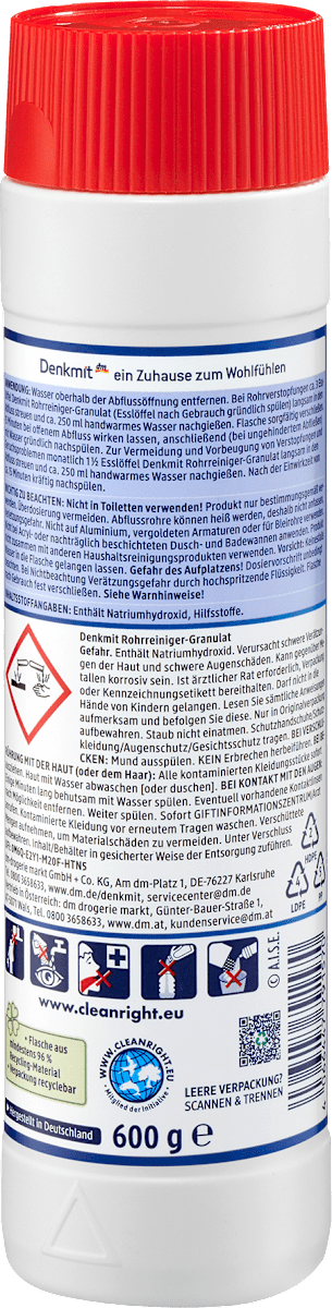 تخلّص من انسداد المجاري بسرعة وفعالية مع Denkmit Drain Cleaner Granules، الحبيبات القوية المصممة لإذ... تخلّص من انسداد المجاري بسرعة وفعالية مع Denkmit Drain Cleaner Granules، الحبيبات القوية المصممة لإذابة أصعب التكتلات في الأنابيب سواء في المطبخ أو الحمّام. 🧼 المميزات: يزيل الانسدادات العنيدة الناتجة عن الشعر، الدهون وبقايا الصابون. مناسب لجميع أنواع الأنابيب المنزلية. يقضي على الروائح الكريهة ويترك الأنابيب نظيفة ومنتعشة. تركيبة قوية تضمن تنظيفاً عميقاً وسريع المفعول. مثالي للاستخدام المنتظم للحفاظ على نظافة مجاري المياه. 🌿 النتيجة: أنابيب نظيفة، خالية من الانسداد والروائح، تعيد الانسيابية للماء في دقائق. 📦 الوزن: 600 غرام العلامة التجارية: Denkmit النوع: حبيبات منظف مجاري للاستخدام المنزلي