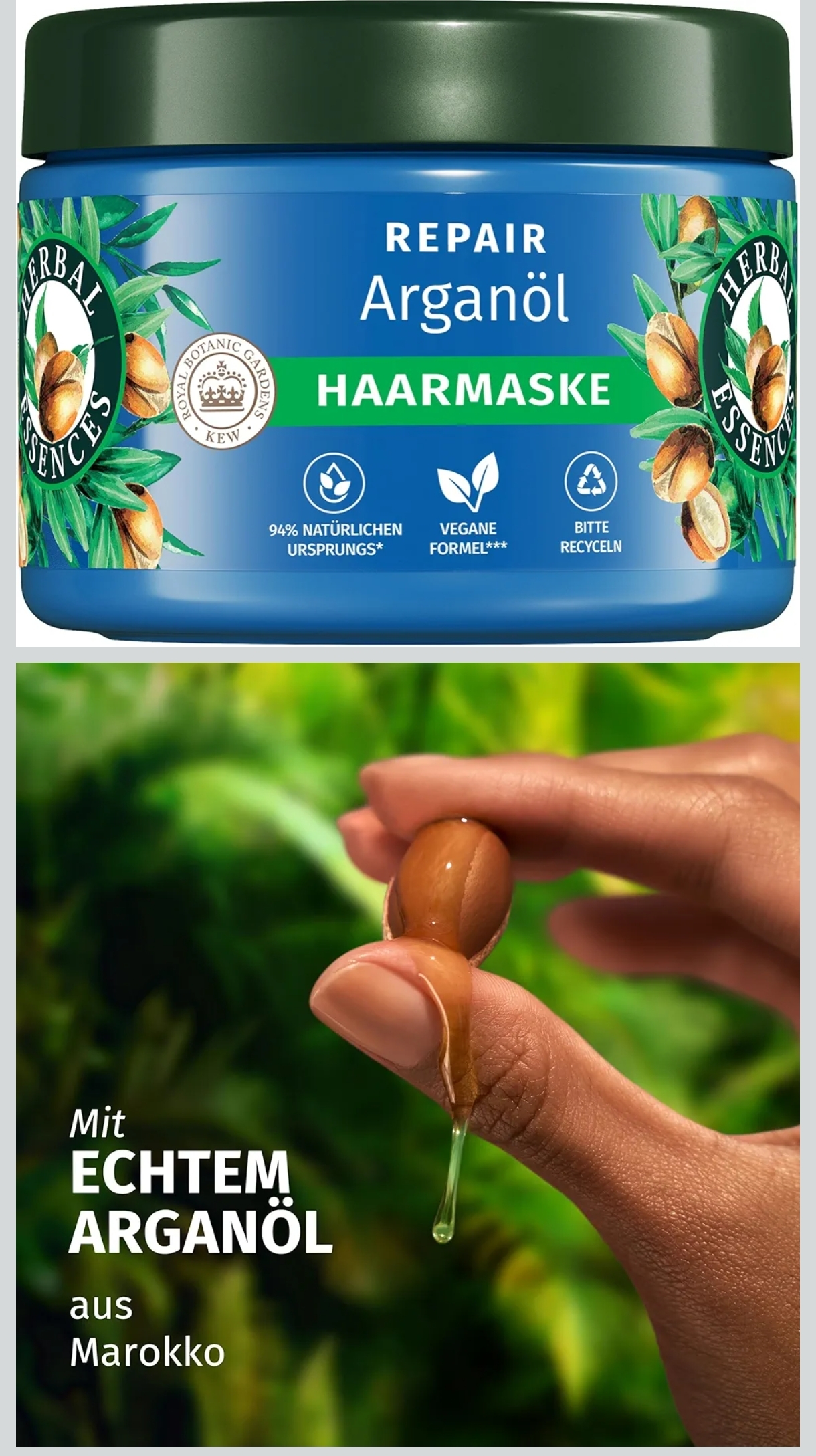 هيربل إيسنسز – طقم العناية المتكامل بزيت الأرغان لإصلاح الشعر التالف يتضمن: شامبو 350 مل + بلسم 250 مل + ماسك 300 مل