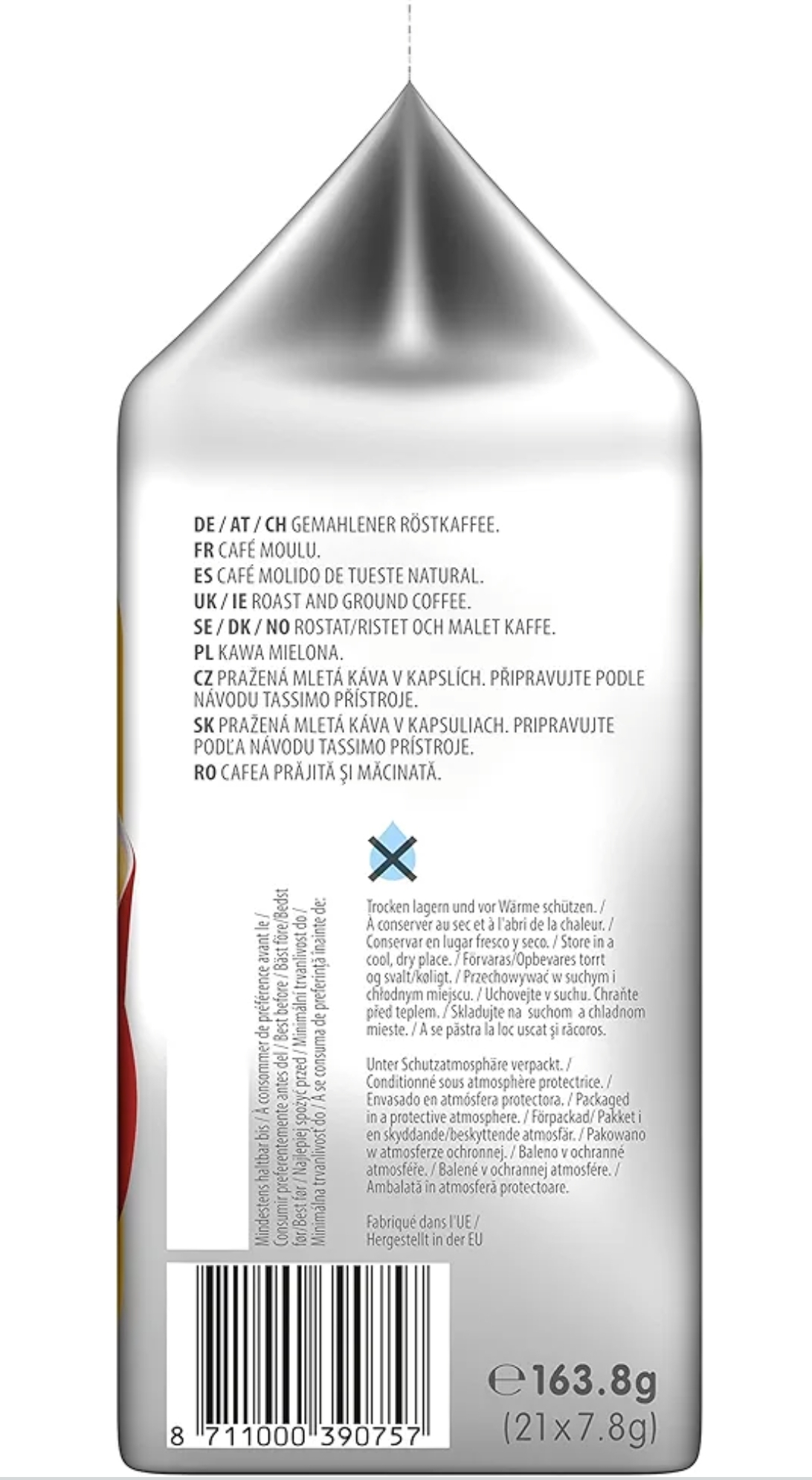 ابدأ يومك بقوة مع تاسيمو مورنينغ كافيه – استيراد خاص من أوروبا 🇪🇺. قهوة قوية وغنية بطابعها المكثّ... ابدأ يومك بقوة مع تاسيمو مورنينغ كافيه – استيراد خاص من أوروبا 🇪🇺. قهوة قوية وغنية بطابعها المكثّف وتحميصها الداكن، تمنحك طاقة مثالية لبداية صباح مليء بالنشاط والتركيز ☕⚡ تأتي بنكهة Strong & Intense لتناسب عشّاق القهوة القوية، مع قوام متماسك ورغوة كريمية خفيفة تجعل كل كوب تجربة ممتعة. 📦 محتوى الكيس: يحتوي على 21 كبسولة XL لتحضير 21 كوب قهوة كبيرة الحجم باستخدام أجهزة Tassimo الأصلية. خيار مثالي لعشّاق النكهات القوية والبدء بيوم حيوي ومليء بالطاقة، بطعم قهوة أوروبية فاخرة.