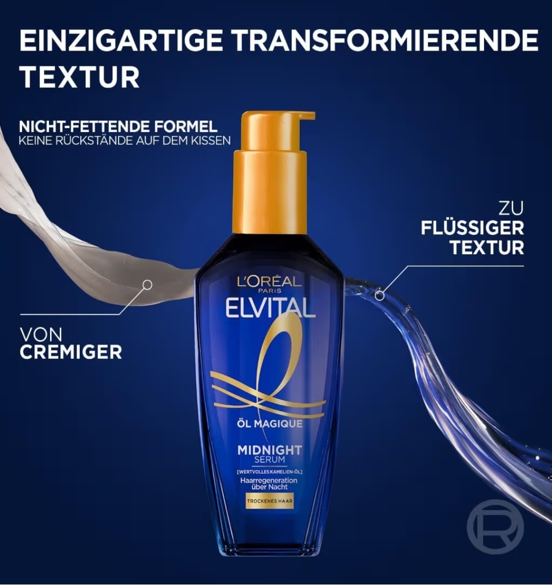 سيروم لوريال باريس إلڤيتال ميدنايت – Elvital Oil Magique Midnight Serum بزيت الكاميليا، حجم 100 مل