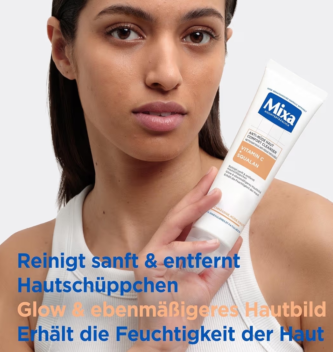 غسول مِكسا الفرنسي المنعش بفيتامين C وسكوالان – Mixa Anti-Tired Skin Comfort Cleanser بحجم 150 مل