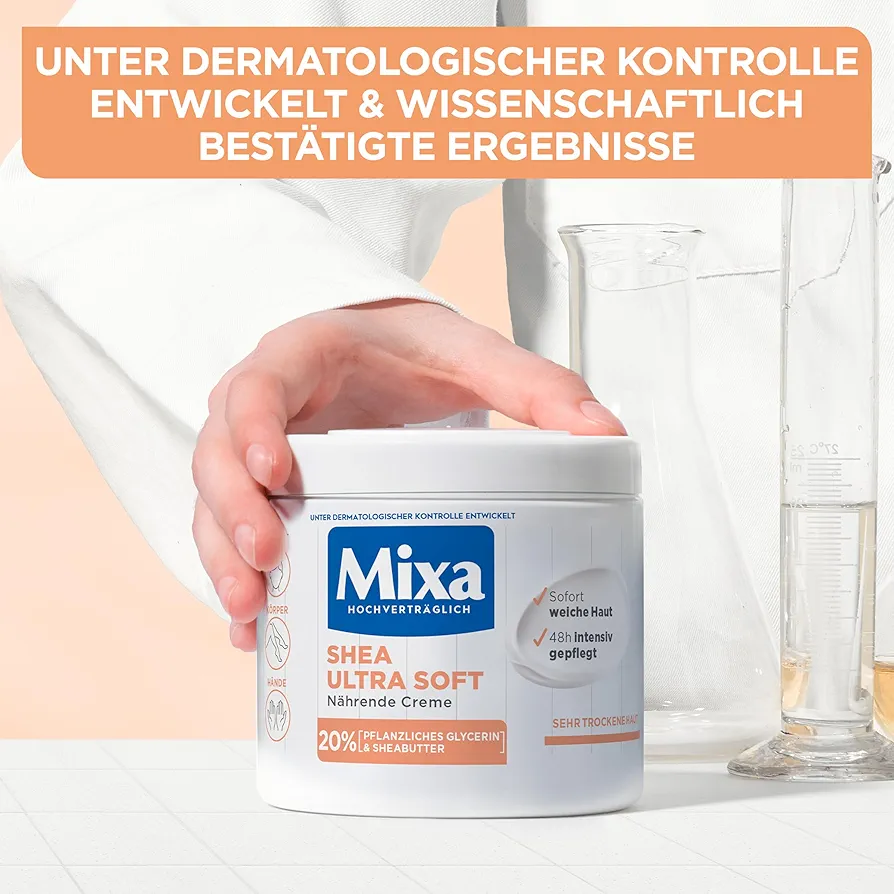 كريم مكسا Mixa Shea Ultra Soft - ترطيب 20% غليسيرين نباتي + زبدة الشيا – 400مل