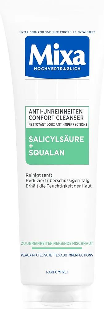 غسول Mixa المضاد للشوائب هو روتين تنظيف يومي لطيف ومناسب للبشرة الحساسة والمعرّضة للحبوب. تركيبته ال... غسول Mixa المضاد للشوائب هو روتين تنظيف يومي لطيف ومناسب للبشرة الحساسة والمعرّضة للحبوب. تركيبته المعزّزة بحمض الساليسيليك المنظم للدهون والسكوالان الداعم لحاجز البشرة تنظّف البشرة بعمق بدون ما تسبب جفاف أو شد. يساعد على إزالة 60% من الدهون الزائدة، تقليل مظهر المسام وتنظيف آثار المكياج بسهولة، مع الحفاظ على ترطيب البشرة ونعومتها. التركيبة هيبوالرجينيك وخالية من العطور والصابون، لتكون مناسبة تماماً للبشرة الحساسة. طريقة الاستخدام: يستخدم صباحاً ومساءً على بشرة رطبة، يُدلّك بحركات دائرية ثم يُشطف. يُفضّل تجنب منطقة العين. العبوة: 150 مل – مناسب للاستعمال اليومي.